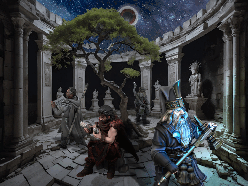 In a hall of silent statues, ‘neath the Eye’s pale glance,