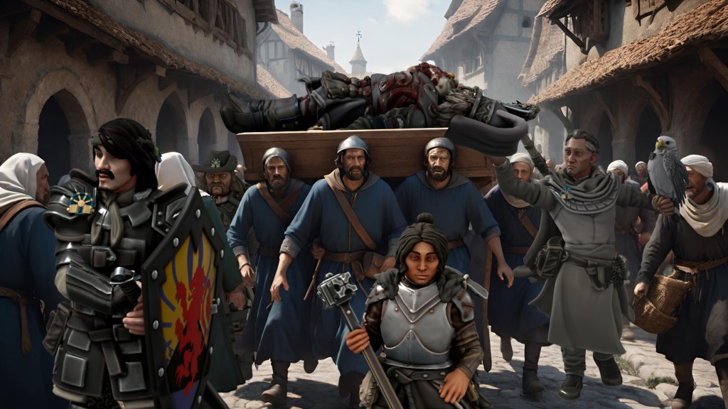 Cudgel’s comrades carry Kanathar’s corpse through Kalaman,