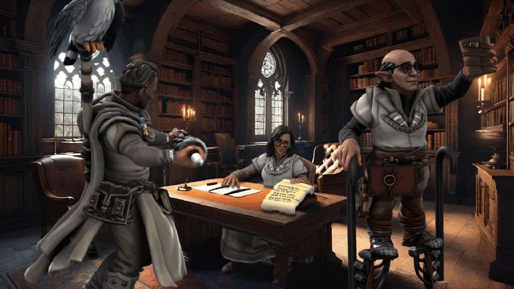 a mage, Andir Valmarkos, dressed head to toe in scarlet.
